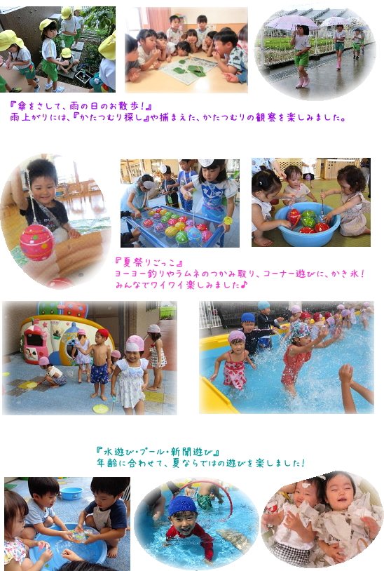 地域交流に力を入れ、老人ホーム慰問やお年寄りとの交流、本大すきの会活動との交流、幼稚園児との交流などその経験の中から、思いやりの気持ちや正しい言葉、豊かな情操を養います。平成25年3月に完成した明るい園舎、広い園庭で子ども達はのびのびと元気に遊んでいます。